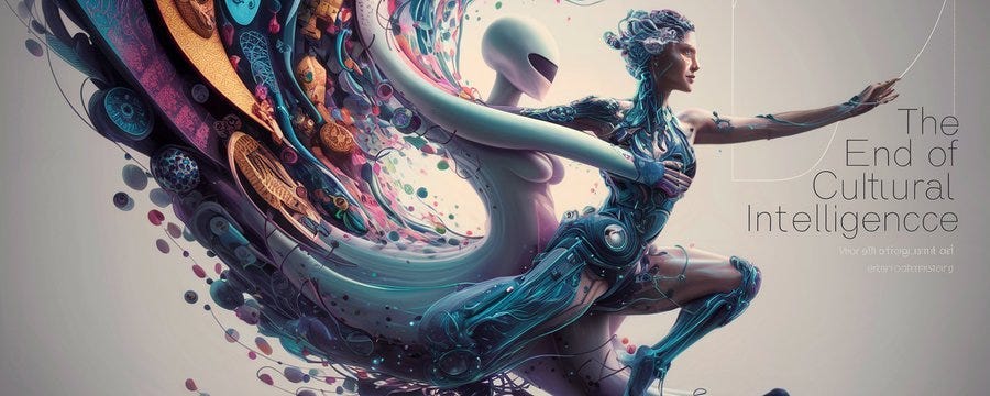 What is certain is that the very parameters of “culture” and of “human intelligence” defined by the modern era are now in flux. The 50,000 year arc of culturally situated and culturally bounded cognition is coming to an end, and in its place a radically new human-AI cultural multiverse is coming into being, one in which intelligence is no longer the product of biological and cultural evolution alone, but of their cybernetic fusion with artificial intelligence systems that both subsume and transcend them.