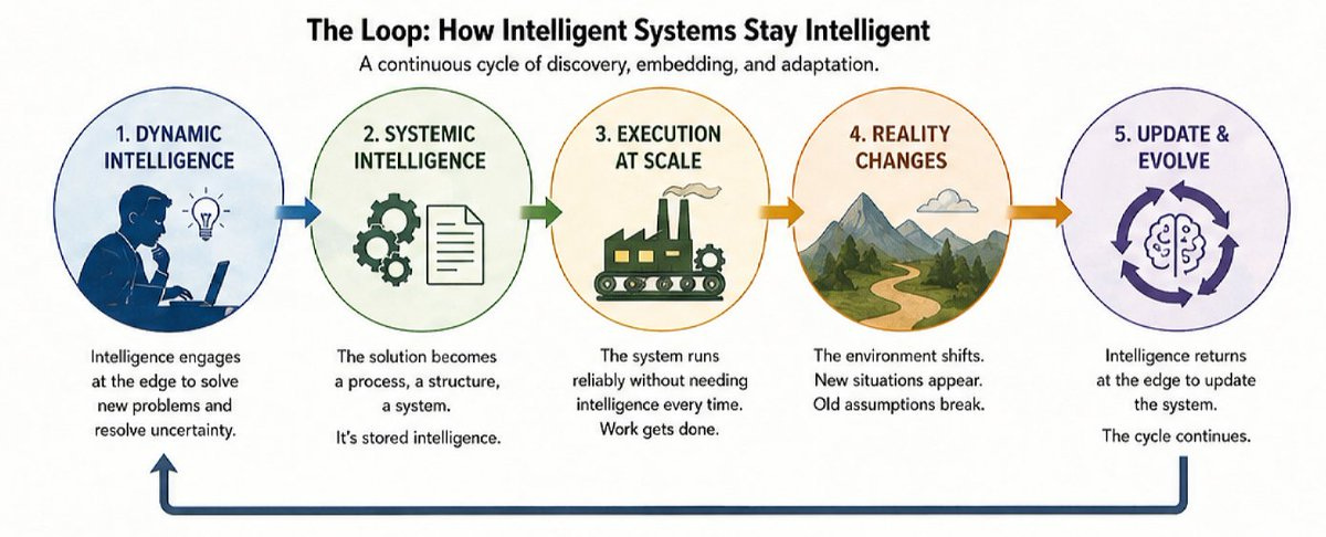 Dynamic intelligence becomes structure, executes, breaks, and gets updated—over and over.